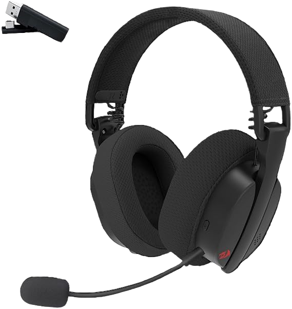 سماعة رأس ألعاب لاسلكية Redragon H888 بصوت محيطي 7.1، سماعات رأس ألعاب ثلاثية الأوضاع، تصميم خفيف الوزن 168 جرام - ميكروفون قابل للفصل - مشغل 40 مم، سماعة رأس ألعاب مبطنة بإسفنج الذاكرة الناعم للكمبيوتر الشخصي، لون أسود
